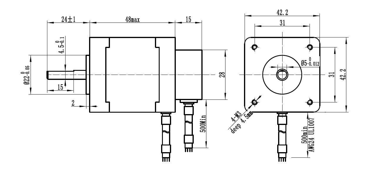 | 42HSE05N-D24 | 2 | 1.8 | 1.5 | 2.8 | 5.5 | 0.55 | 48 | 1000 | 0.45 |