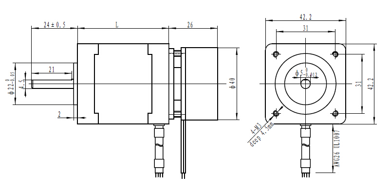 35 | 24V | 5.8W | 40mm | 26mm | 0.35N.m | 42HSB | 0.15KG |